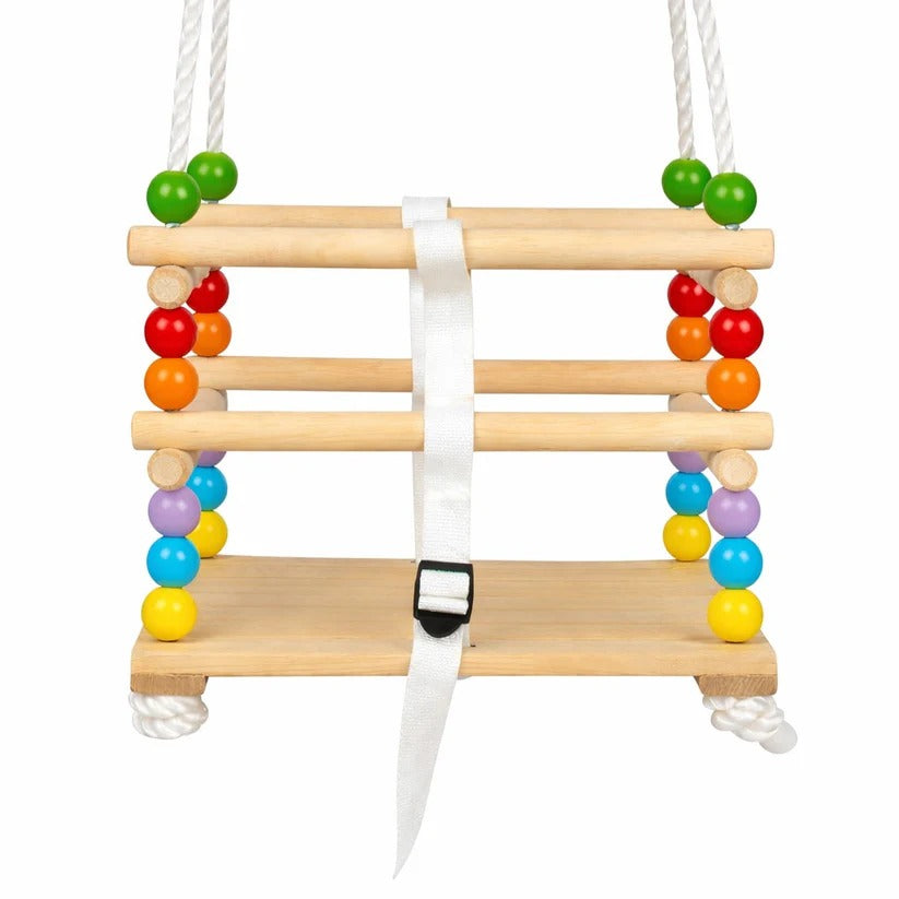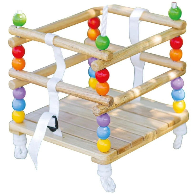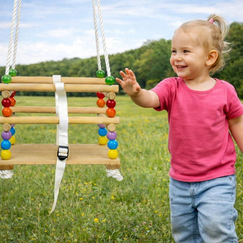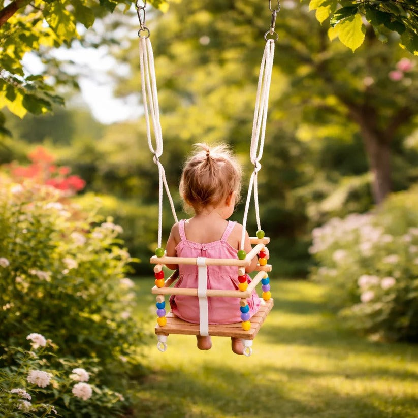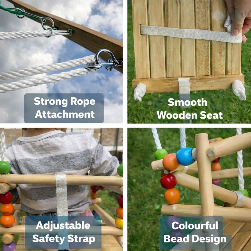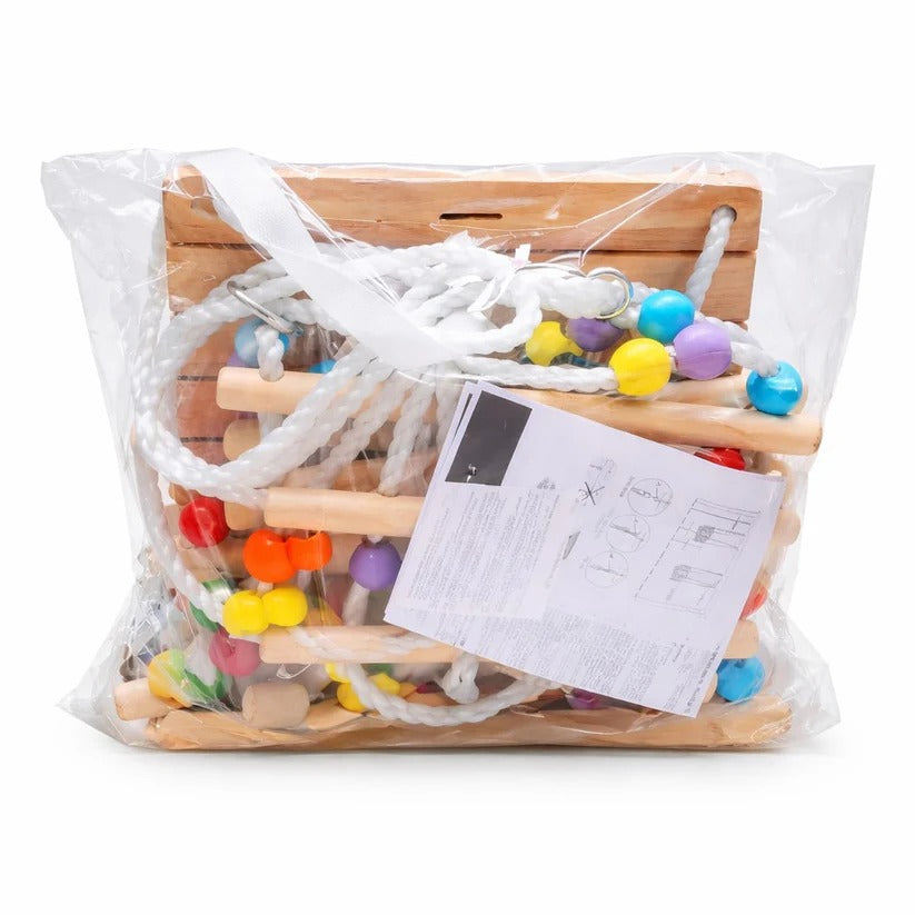 Dekorativne drvene perle daju atraktivan izgled i pomažu u razvoju fine motorike, koordinacije oko-ruka i senzorne percepcije. Ljuljaška nije samo zabavna, već i korisna igračka za razvoj.