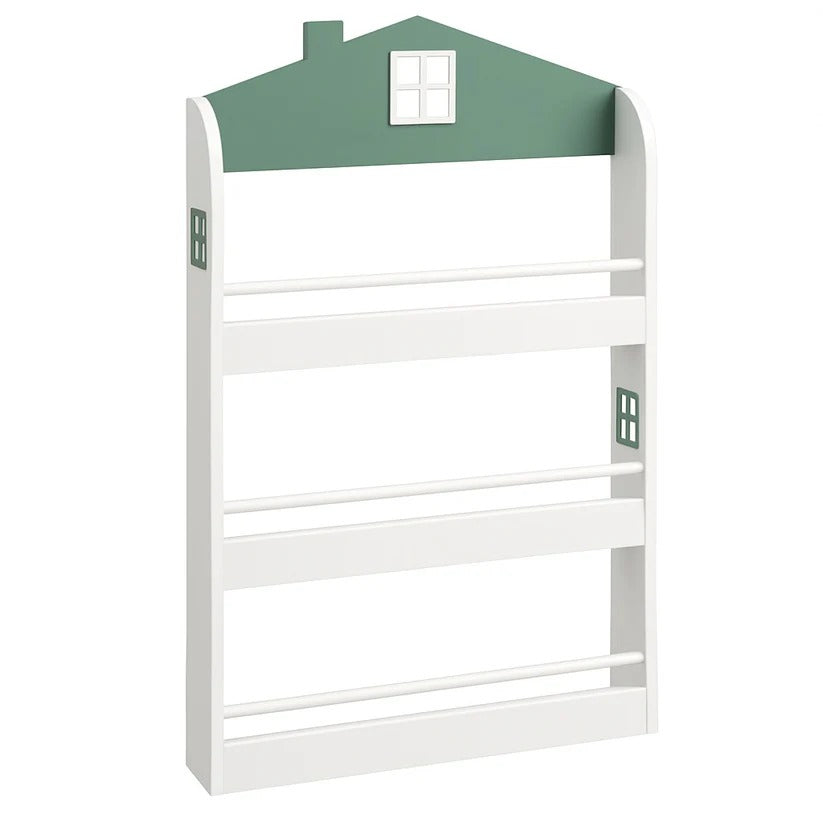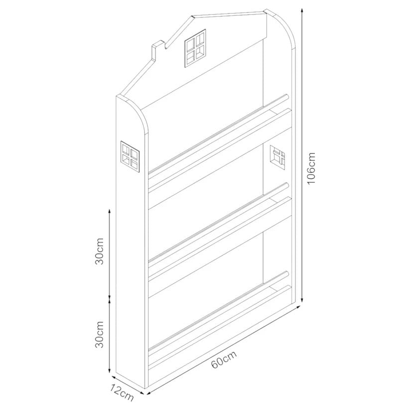Ima 3 otvorene police, smeštene na visini pogodnoj za decu - praktičan i vidljiv prostor za knjige, slagalice, kutije, edukativni materijal i dodatke. Zahvaljujući dizajnu nalik kućici sa prozorima, biblioteka postaje ne samo praktičan komad nameštaja, već i deo igre i imaginarnog sveta dece.