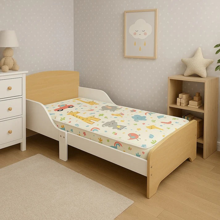 Idealan izbor za prelazak iz dečijeg krevetića u krevet za prvo dete - pogodan za dečaka i devojčicu. Model kombinuje elegantan dizajn, visokokvalitetnu izradu i maksimalnu bezbednost za Vaše dete.