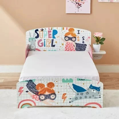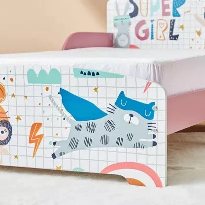 Funkcionalan i udoban: ovo je stabilan i precizno napravljen SUPER GIRL dečiji krevet sa visokokvalitetnom štampom u boji. Savršeno za rasadnik.