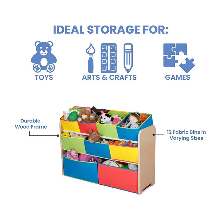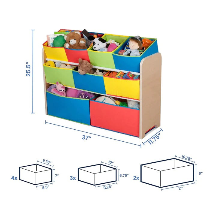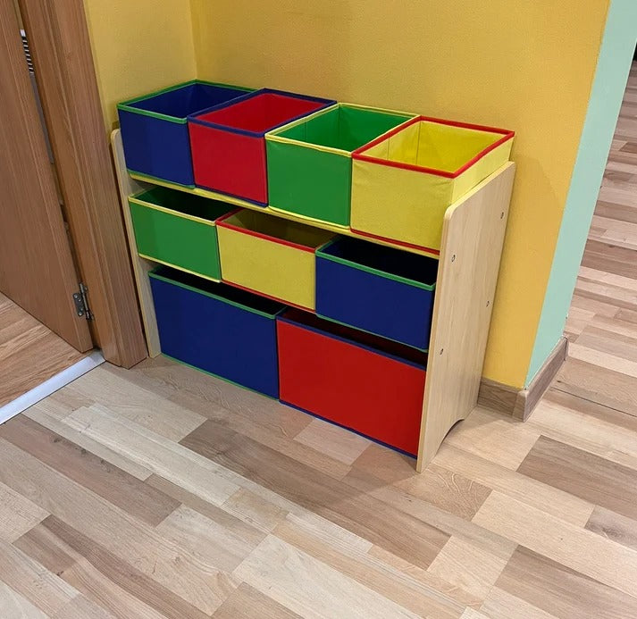 Organizator ima 9 kutija za odlaganje tekstila različitih veličina koje se mogu ukloniti - savršene za knjige, igračke i pribor za crtanje.